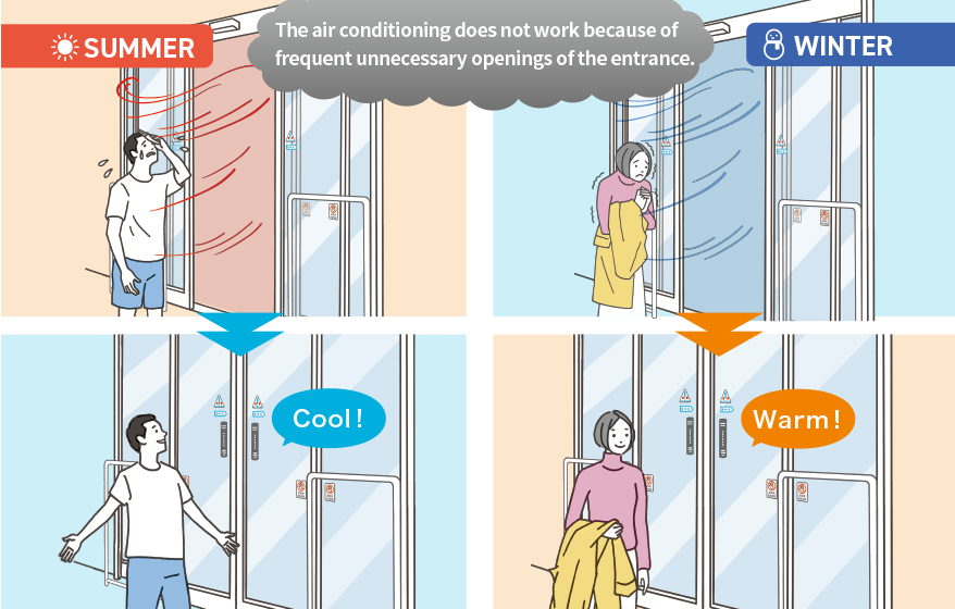 The air conditioning does not work because the entrance opens frequently.The automatic door opens just by passing by.