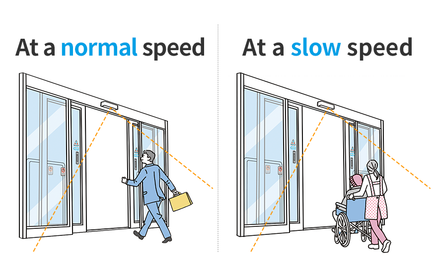 for the person to reach the doors, the doors will open in a timely fashion both for people