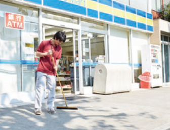commercial facilities where customers stand and talk near automatic doors, and streetside stores facing