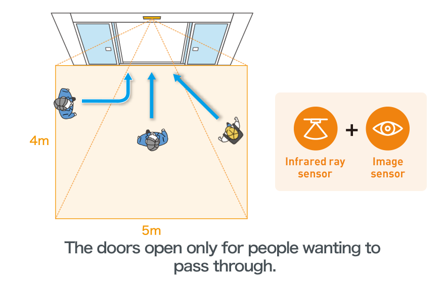 Unnecessary opening time will be reduced by pedestrian flow detection. That reduces power