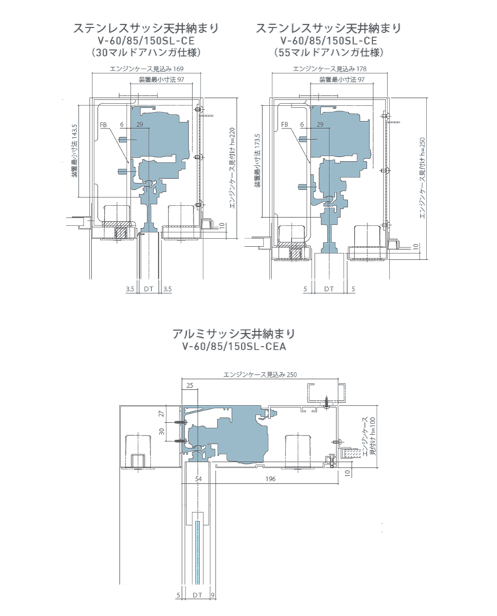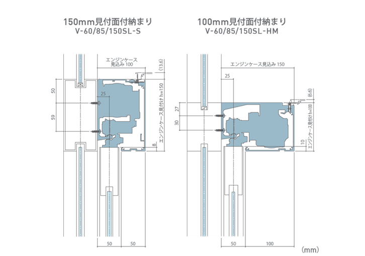 | V-150SL | 引分け(戸車φ30) 引分け(戸車φ55) 片引き(戸車φ30) 片引き(戸車φ55) |