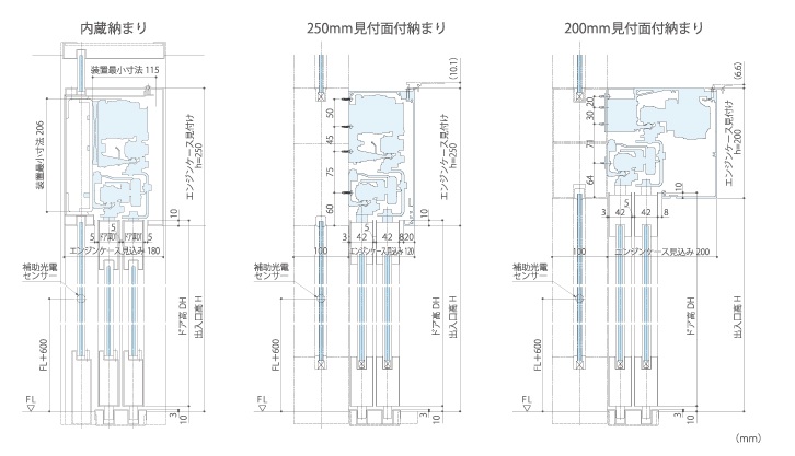 ※下記仕様欄における適用ドア単体幅はステンレス框ドア(ドアの重なり寸法50mm)の場合となります。